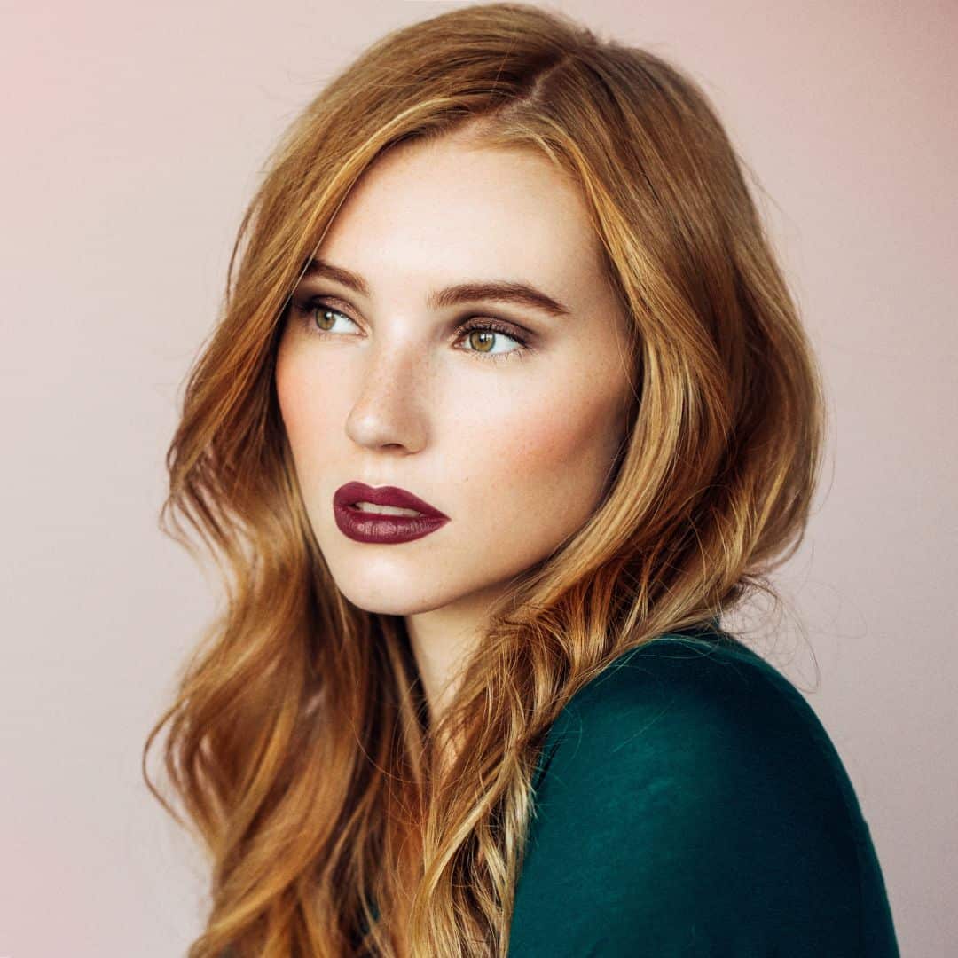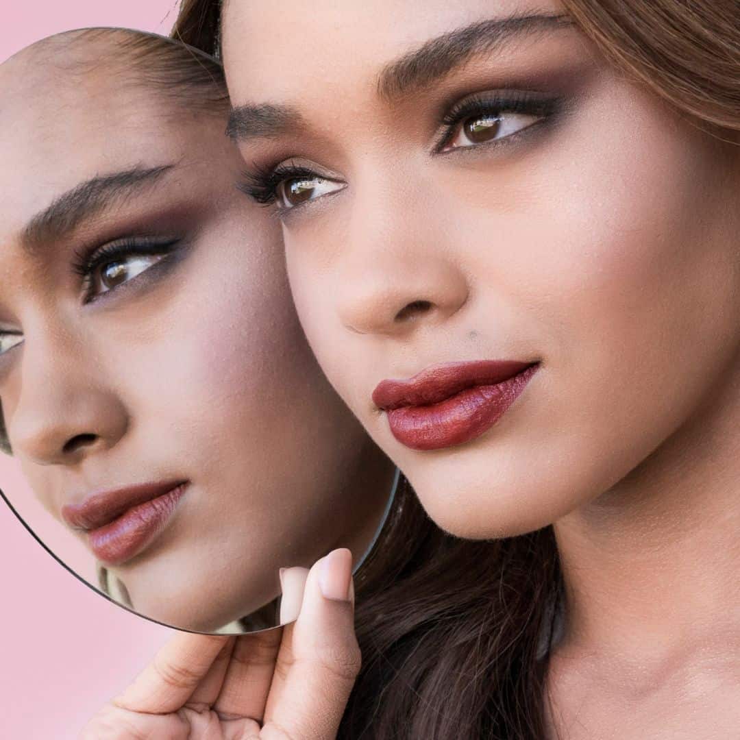 The intensity of this rich, dark-red lipstick makes anyone radiant for an evening out and dazzling enough to steal the show at a flashy event.